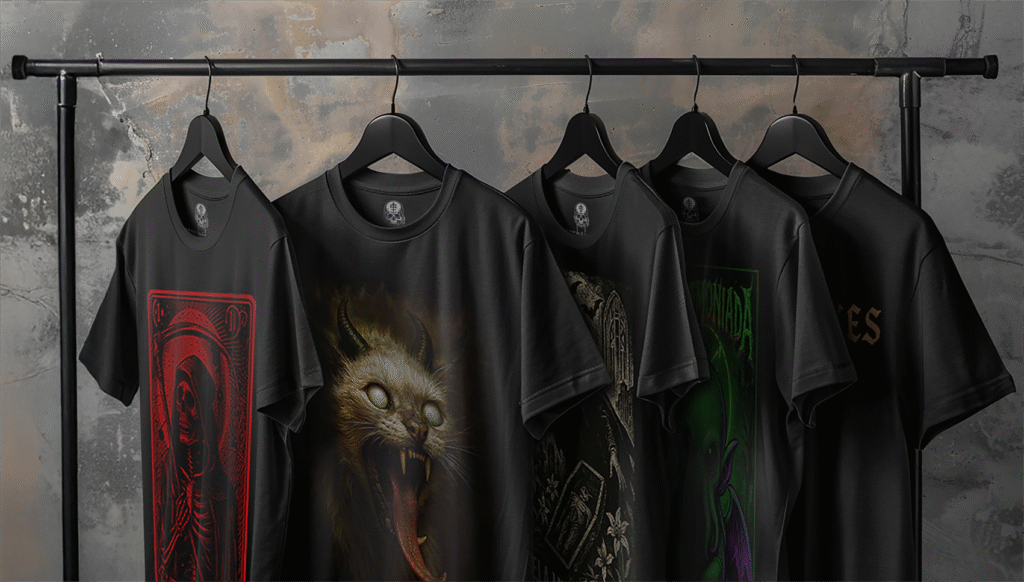 Nos inspiran los vampiros, las brujas, los demonios, los rituales, el ocultismo, el cine de horror y todo lo que habita en las sombras. Aquí celebramos lo que otros esconden. Lo gótico, lo raro, lo simbólico. Cada diseño es una pieza con intención, pensada para quien se atreve a vestir su identidad con orgullo.